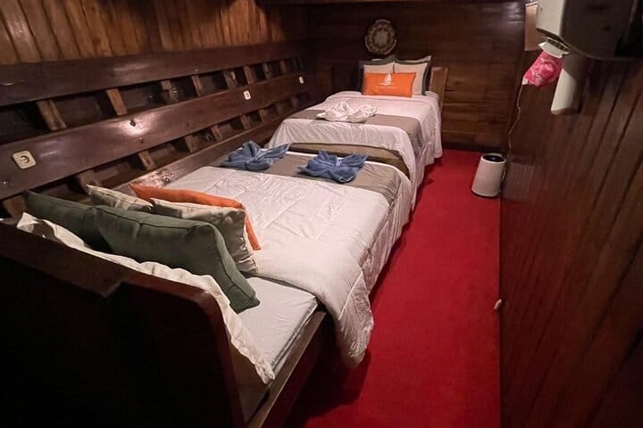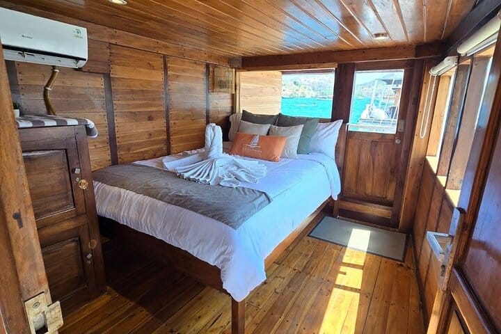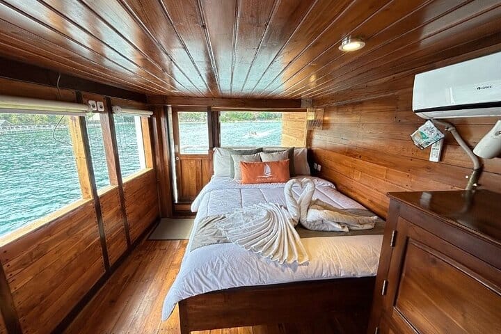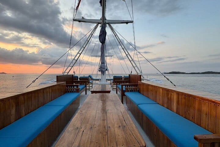 Meet the legendary Komodo dragons on a guided visit with a local ranger, and enjoy a magical sunset at Kalong Island, where thousands of flying foxes fill the sky. Spend two nights on board, enjoying fresh meals, sea views, and a laid-back atmosphere with fellow travelers.